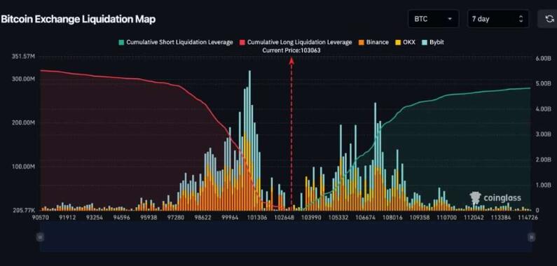 • 청산 집중 구간: 많은 포지션이 청산되는 가격 레벨
